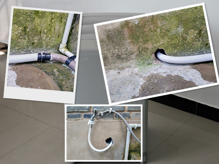 洗衣机安装个人认为很简单,小米提供一次免费安装,不过墙壁打孔需要收取服务费,想了想,打孔要收费,打孔工具自己也有,不如给小米和朋友节约点费用,自己帮朋友安装算了。不过没有开孔器,用的25mm钻花,效果嘛将就看看。