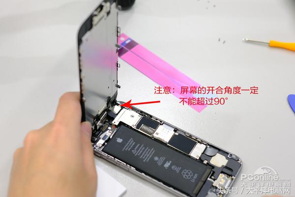 最终,至关重要的一步,留意实际操作啊!将手机屏稍微往下推,这时全部显示屏早已被详细拆下来了,可是显示屏后边的线排仍然与电脑主板相接,不可以大视角大范畴的挪动显示屏,谨记扯开显示屏的视角勿超出九十度。